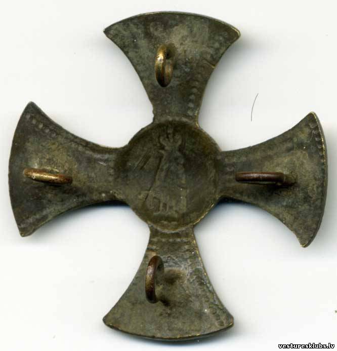 | Iespējams tas ir krusts - kokarde kas bija piestiprināma pie galvassegas ( ополченский - laikam milicijas/policijas/sardzes) Aleksandra III laika. Šim krustam ir divi tipi . 1.tips 2.tips Taču man nav speciālas literatūras par apbalvojumiem, tāpēc iespējams es kļūdos.