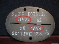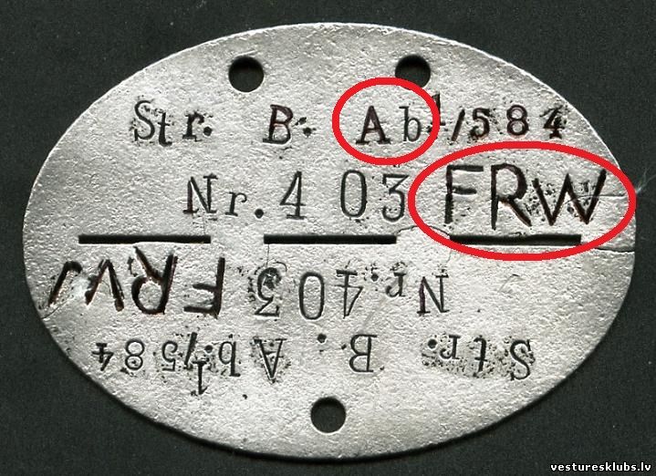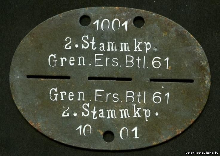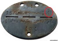 | Ar laiku žetonu marķēšanā reglaments tika pārkāpts, karavīra identifikācijas numuru iespiežot žetona augšā, bet vienības nosaukumu apakšā.
