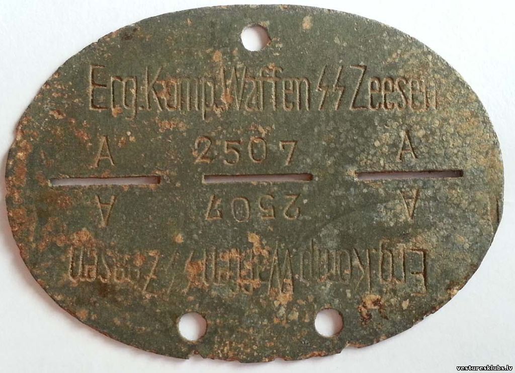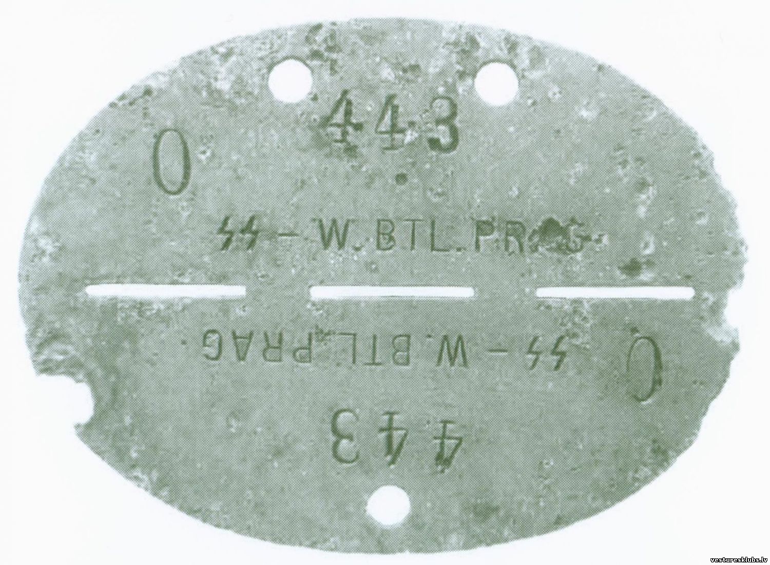 Interesanti, ka SS-Ausbildungs Bataillon zbV un SS-Ausbildungs Regiment Prag žetoniem ir identisks šrifts. Acīmredzot, žetoni gatavoti vienā un tanī pašā uzņēmumā.Tev nebūs svešu tautu Dievus turēt augstāk par savējiem!