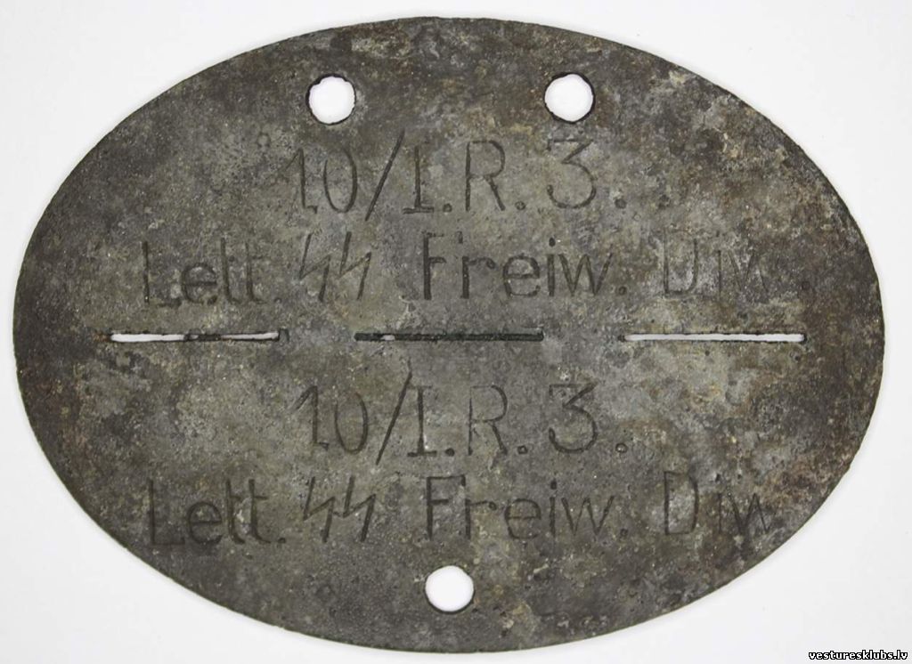Infanterie Regiment 3 / Lettische SS-Freiwilligen Division Šiem 3. pulka žetoniem ir raksturīga žetona otra puse ar karavīra numuru un uzrakstu Blutgruppe (asinsgrupa). Otra unikālā atšķirība ir vārda Division rakstīšana ar "W" - DIW.Tev nebūs svešu tautu Dievus turēt augstāk par savējiem!