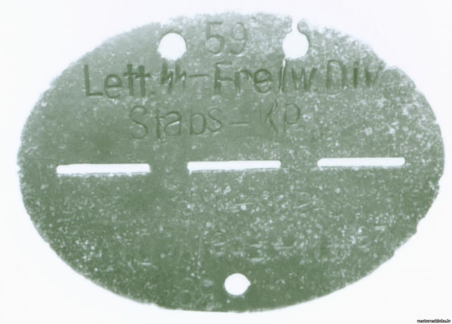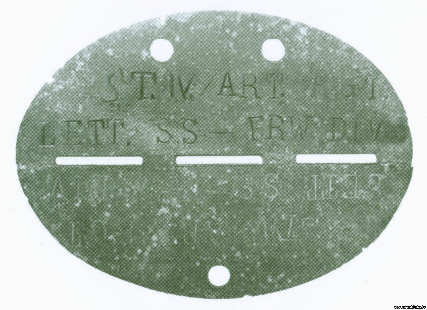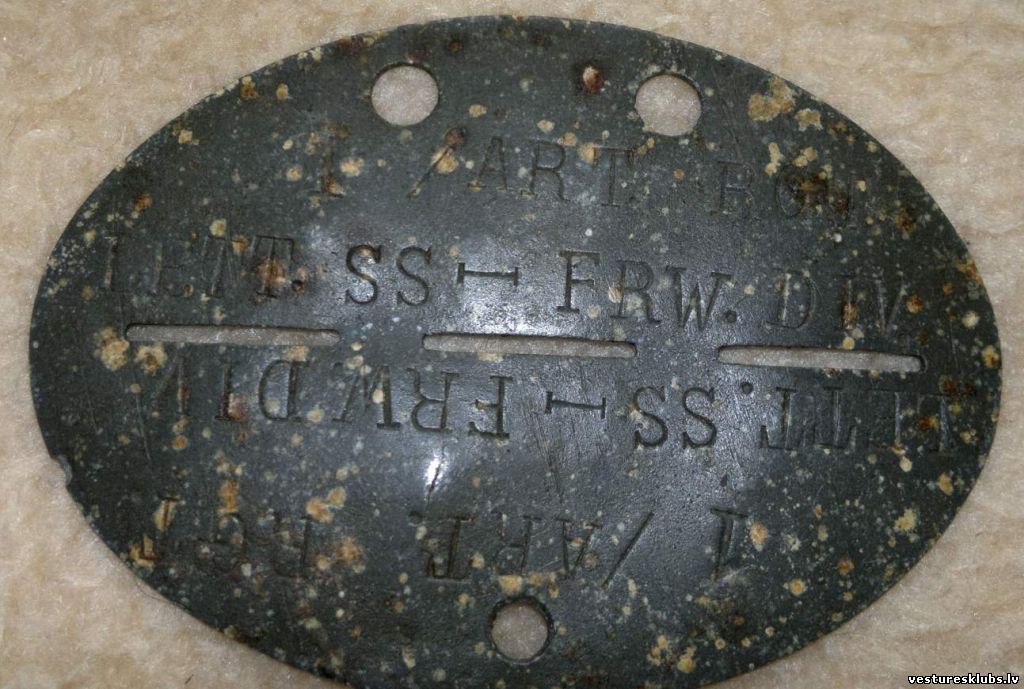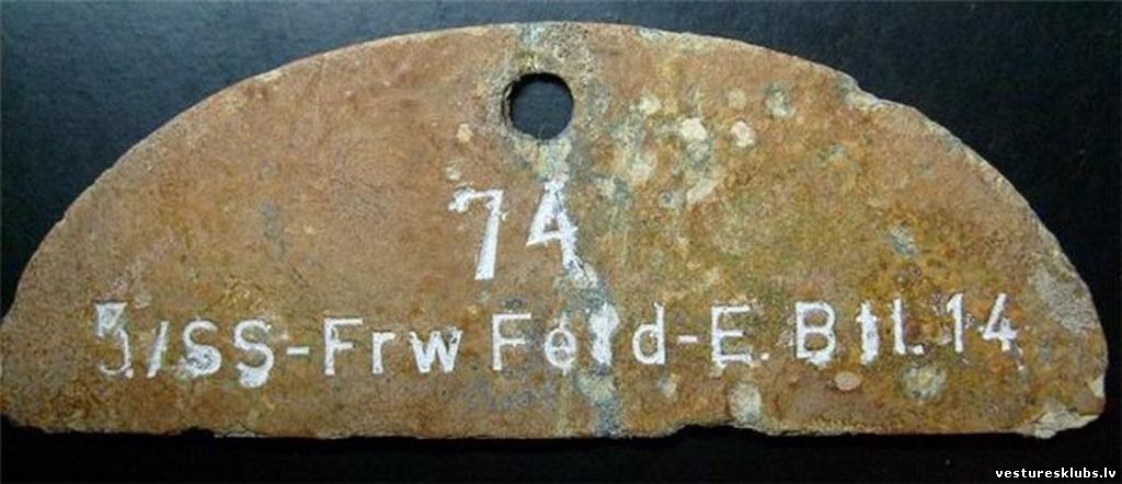Šīs vienības žetoni, kas atrasti Novosokoļņiku un Neveles rajonā, kā arī Vācijā, varētu liecināt par piederību 15. SS divīzijai.Tev nebūs svešu tautu Dievus turēt augstāk par savējiem!