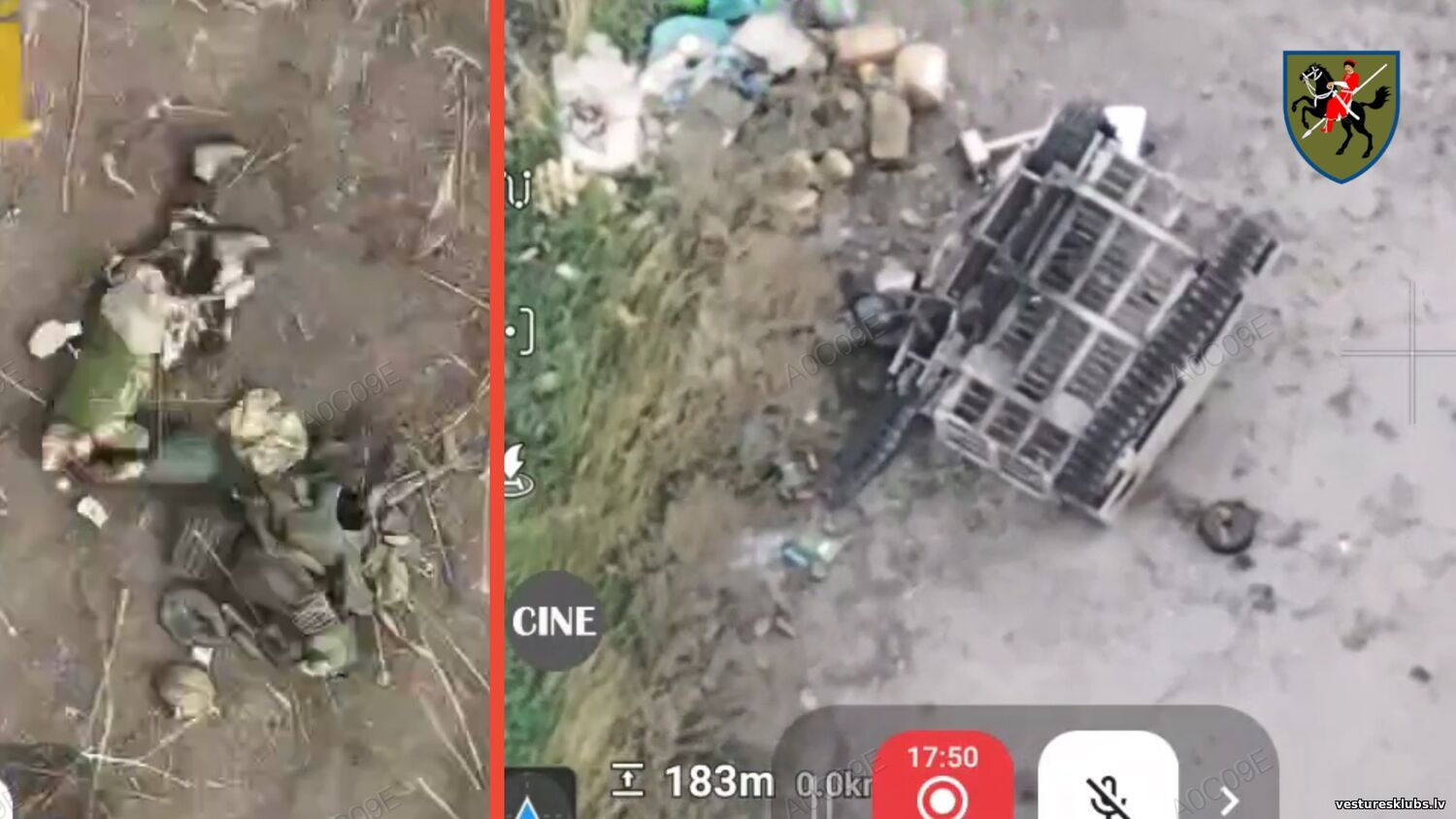 Слева – убитый противник. Справа – наш уничтоженный робот. Эти два сундука очень показательны. Можно заметить как много имущества на себе тащил оккупант. Это указывает на тактику "диффузии". Враг максимально нагружает солдат боекомплектом, провизией и спальниками. Отправляют малые группы, от одного до трех штурмовиков в атаку и те ищут дыры в обороне, пытаясь проскочить незаметными для нашей аэроразведки. 90 процентов противника уничтожаем, но 10, все же, пролезают, накапливаются в определенной точке и закрепляются там. Дальше пытаются перерезать нашу логистику с передовыми позициями. Именно так противник, понеся большие потери, понемногу продвигается. Преимущество россиян в личном составе позволяет использовать такую тактику. На сундуке справа – наш робот «термит». Отношение к человеческой жизни и ее ценности тотальный дефицит личного состава требует от нас развивать технический компонент. В этом случае робот НРК доставлял боеприпасы и провизию на передовую СПху. Миссия, к сожалению, была неудачной, ведь машины еще далеко не совершенны. Скорость движения, тепловая заметность и проблемы со связью часто мешают успешному выполнению задачи. Но это спасенные жизни наших ребят. Робот – это железо: так дорога, но человеческая жизнь бесценна.
